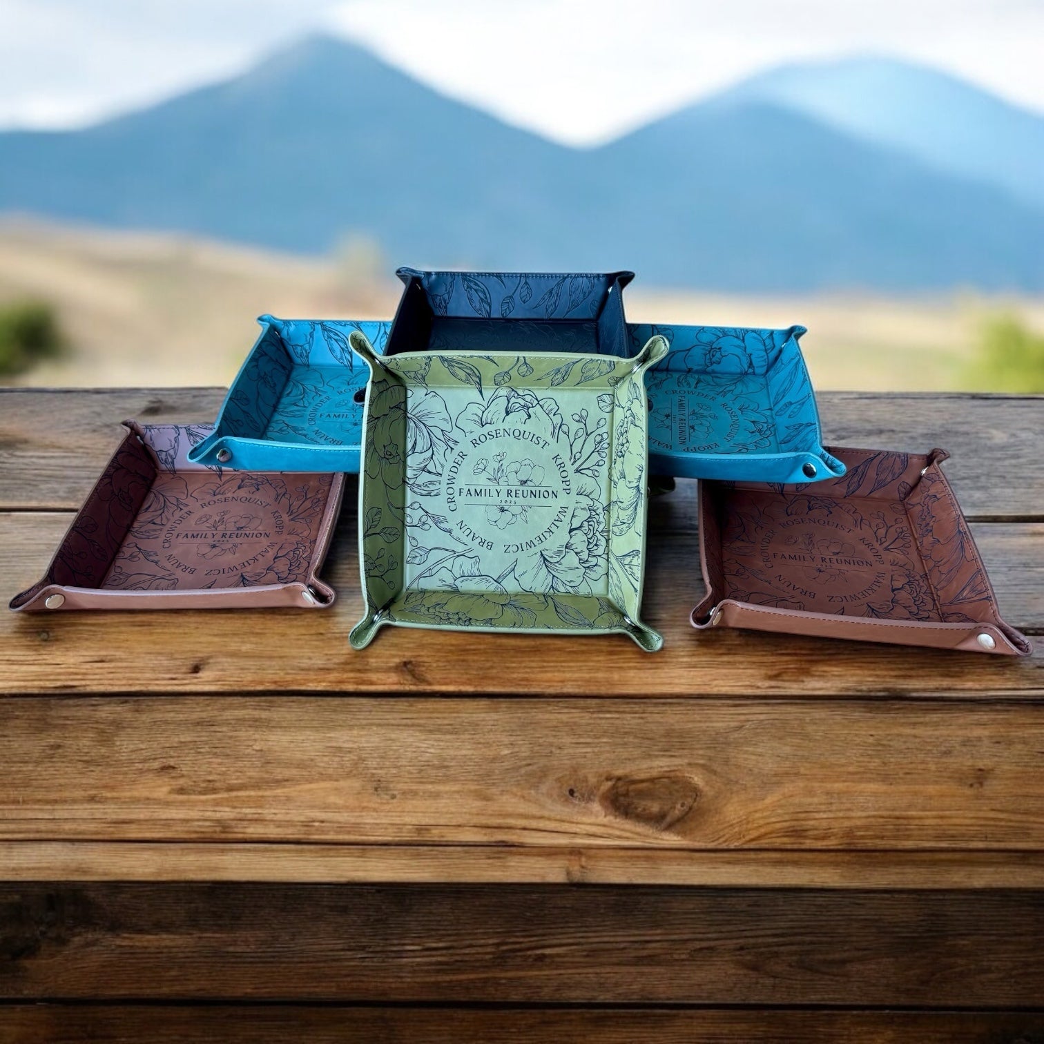 Crafted from premium leatherette, these Catch All Trays offer a sleek, durable solution to organize your everyday essentials. Custom engraving adds a personalized touch, making each tray unique and perfect for home or office. Designed to keep your space tidy while reflecting your style, this tray blends functionality with elegance effortlessly.