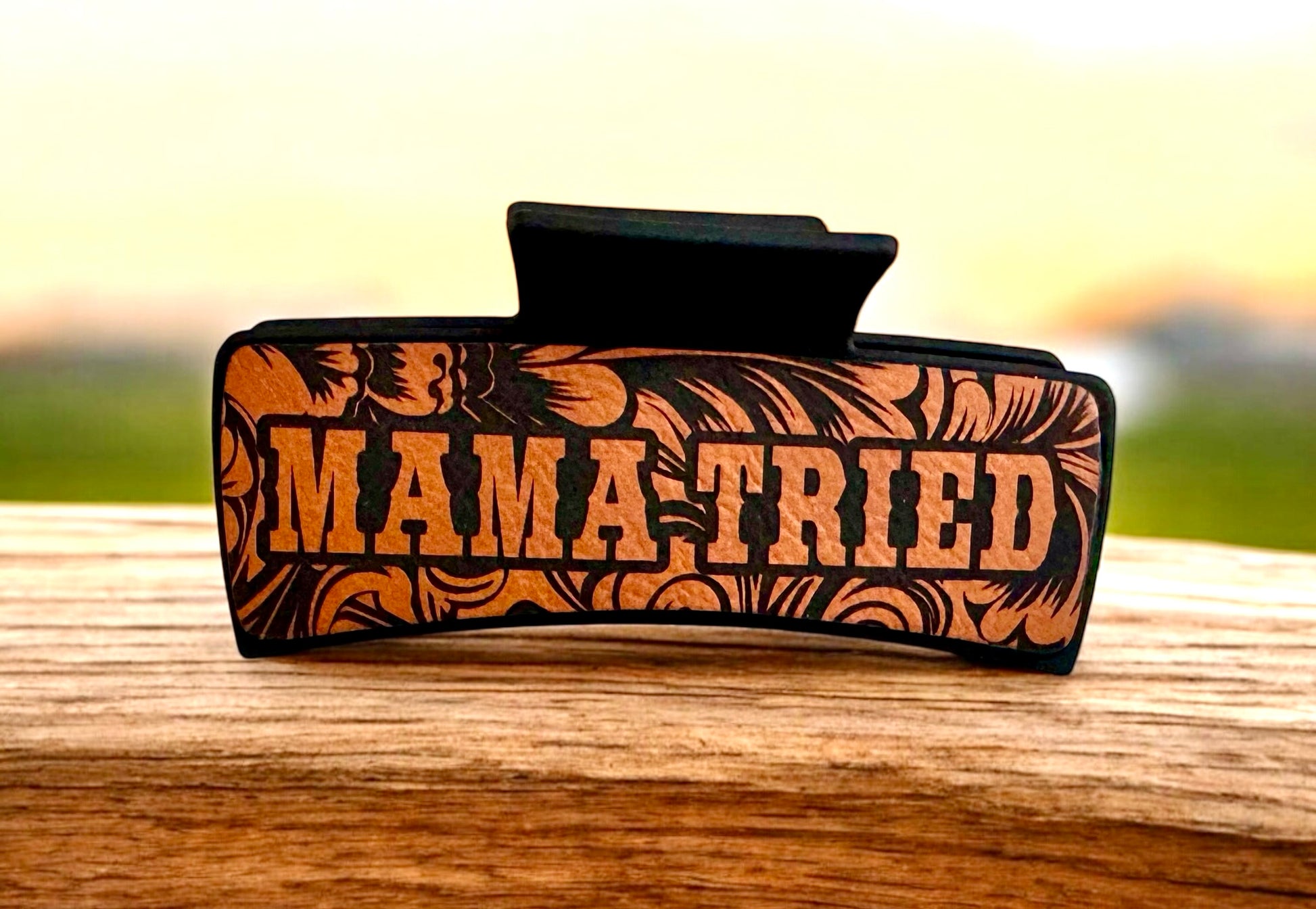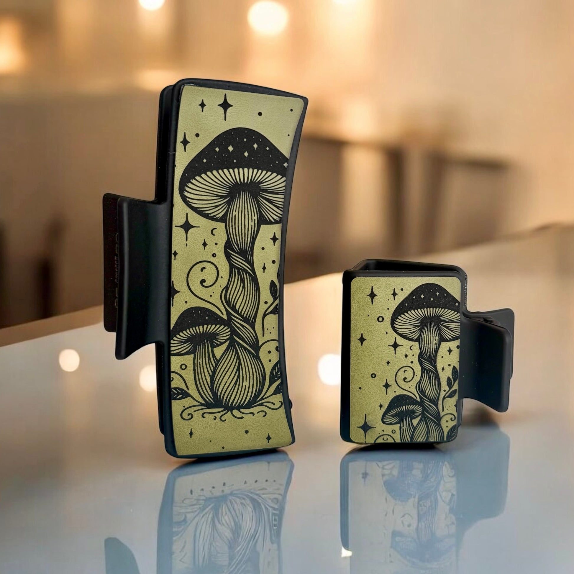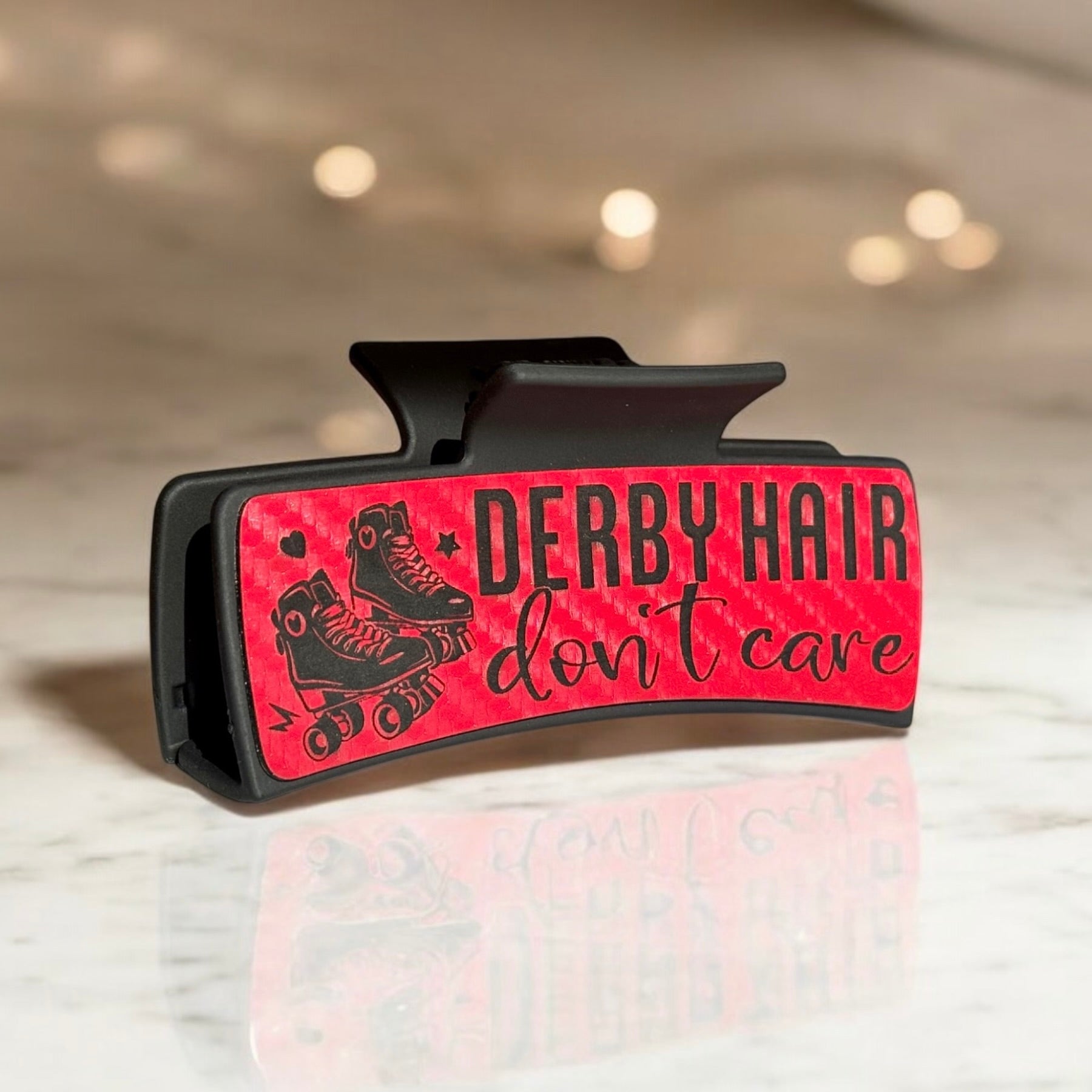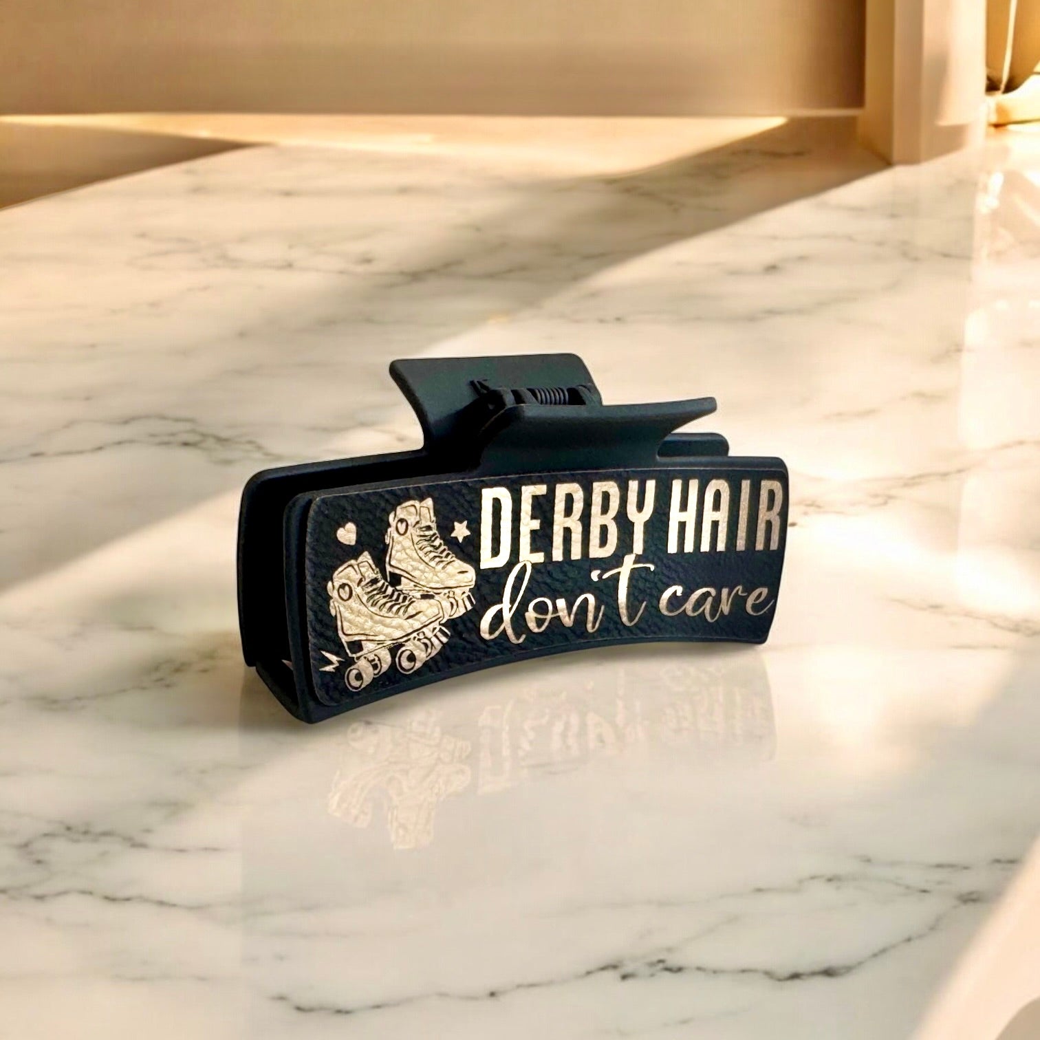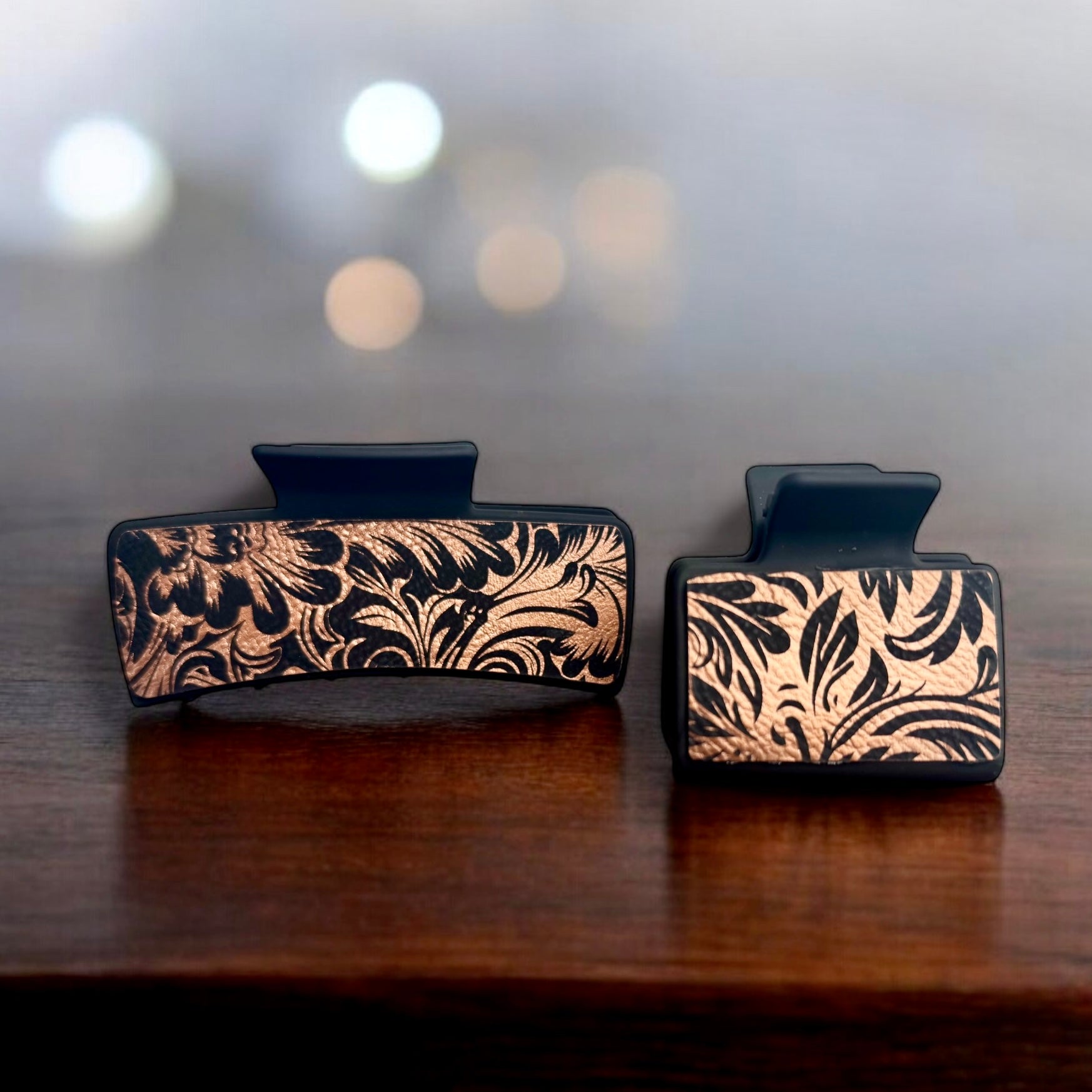 Laser engraved premium leatherette on standard 4" and 2" claw clips. Custom orders available!