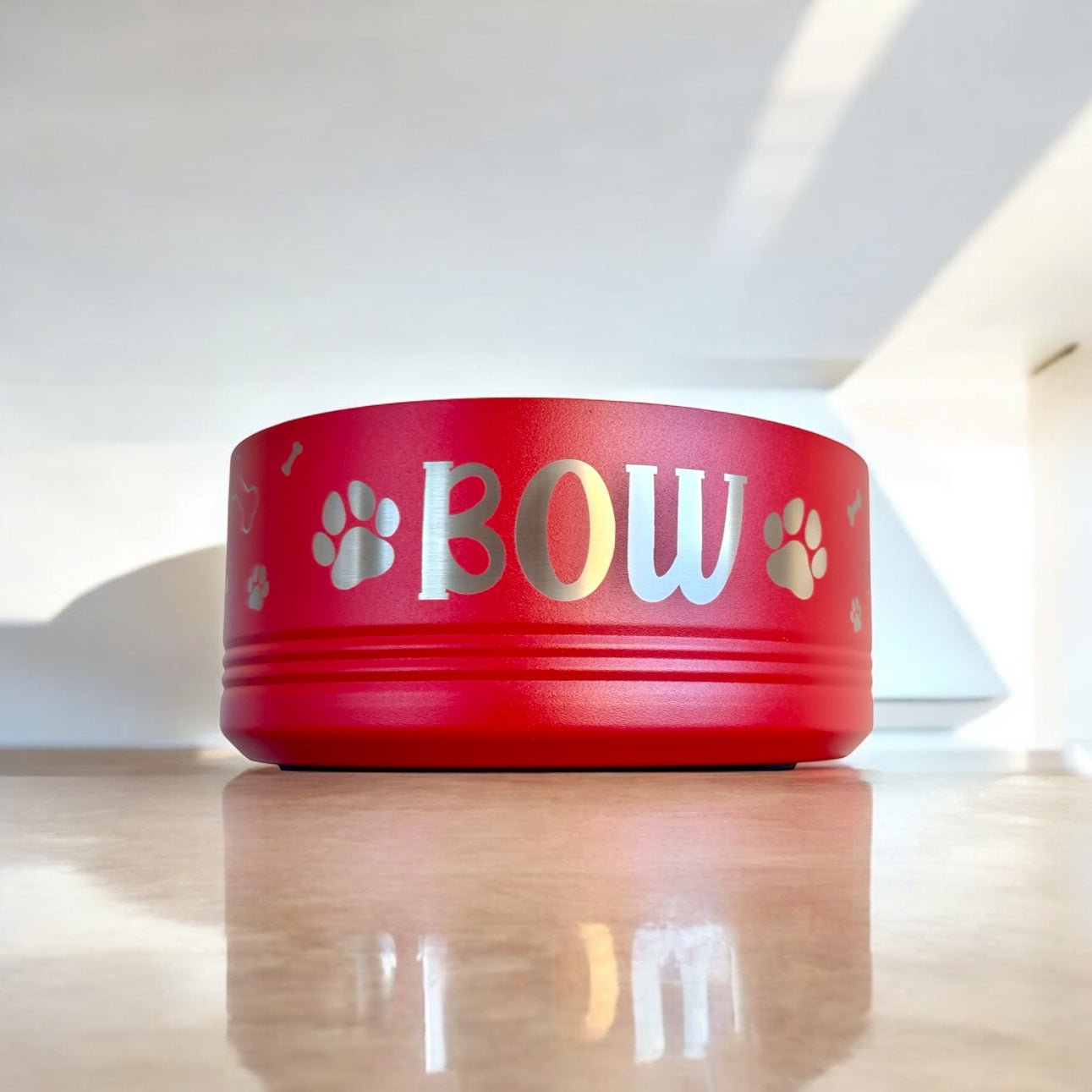 Sturdy and durable Polar Camel pet bowls are available in 18 ounce and 32 ounce sizes, and in 6 colors. They have a large personalization area and non-slip grips on the bottom to prevent sliding on the floor.
